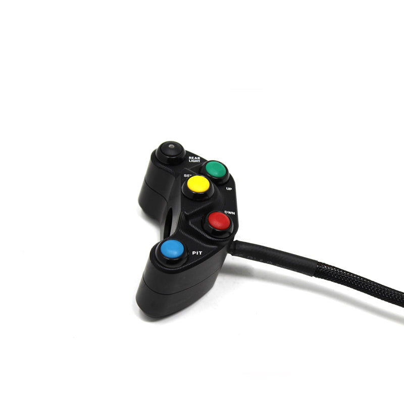 Pulsantiera di comando a 5 tasti ricavata dal pieno in alluminio lavorato CNC. Questo modello di pulsantiera lato frizione è dotata di 5 tasti preimpostati. Il cablaggio plug & play permette di controllare le funzioni TAIL LIGHT, UP, MODE, DOWN, LAP TIMER, PIT LIMITER, LAUNCH CONTROL.